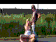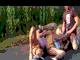 Cette blonde se fait tirer à même le bitume par 2 mecs !